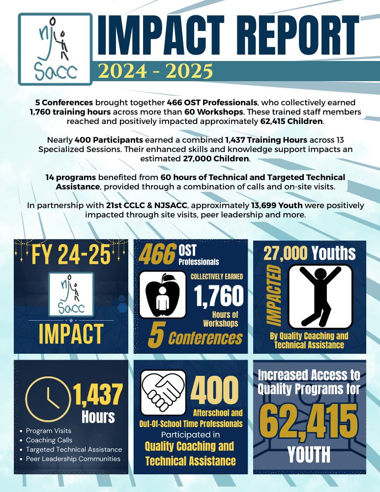 - The annual impact report quantifies NJSACC’s overall impact on the OST professional community.