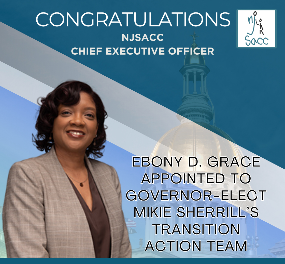 NJSACC is honored to share that Ebony D. Grace, our Chief Executive Officer, has been appointed to Governor-elect Mikie Sherrill’s Transition Action Team. Ebony will participate as a member of the New Jersey’s Kids Mental Health and Online Safety policy team. This is a critical opportunity to provide valuable input with the incoming Administration on children’s mental health, digital well-being, and family safety.