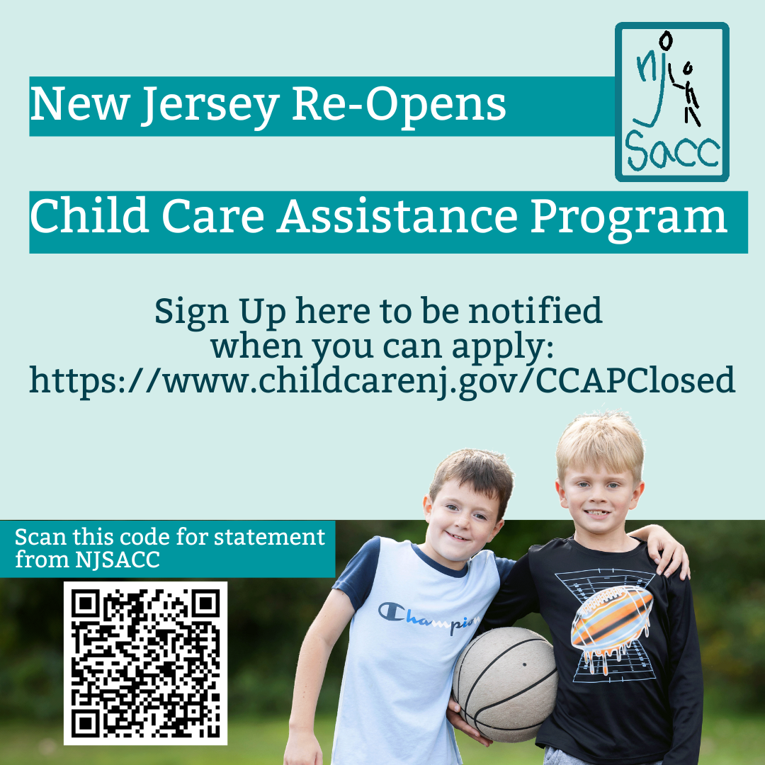 Westfield, NJ — NJSACC, New Jersey’s Afterschool and Out-of-School Time (OST) Professional Network, applauds the State’s decision to reopen the Child Care Assistance Program (CCAP) after months of an application freeze that left thousands of families without critical support. This action is a meaningful step toward restoring stability for working families who depend on child care to remain employed, continue their education, and maintain economic security.