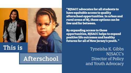- APAW 2026: NJSACC Highlights Tyneisha K. Gibbs!NJSACC’s Director of Policy and Youth Advocacy Tyneisha K. Gibbs Shares Her Afterschool Story! Did you attend an afterschool program in your youth? Tell us what you did after school usually. I didn’t attend formal…