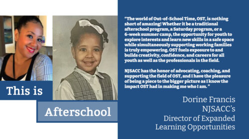 - APAW 2026: NJSACC Highlights Dorine FrancisNJSACC’s Director of Expanded Learning Opportunities Dorine Francis Shares Her Afterschool Story! Dorine Francis writes: “The world of Out-of-School Time, OST, is nothing short of amazing! Whether it be a traditional afterschool program, a Saturday…