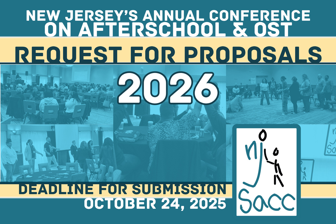 Read MoreNJSACC Conference 2026 Request for Proposals – Due Friday, October 24, 2025. NJSACC: New Jersey’s Afterschool and Out-of-School Time Professional Network is excited to announce the Request for Proposals (RFP) for our 2026 Afterschool and Out-of-School Time Annual Conference. The conference will be held Friday and Saturday, April 17th and 18th, 2026 at the Princeton…
