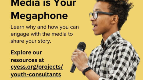 New Resource Alert! Youth Media Training Modules Check out Youth Consultants Here CYESS Youth Consultants are a group of young people aged 13-22 passionate about making change in their communities! As young leaders affiliated with CYESS partners and related organizations, the Youth Consultants are self-identified experts on a variety of topics, and are eager to provide their input and expertise to policy, industry, and program professionals. If you are an adult who wants to tap the…